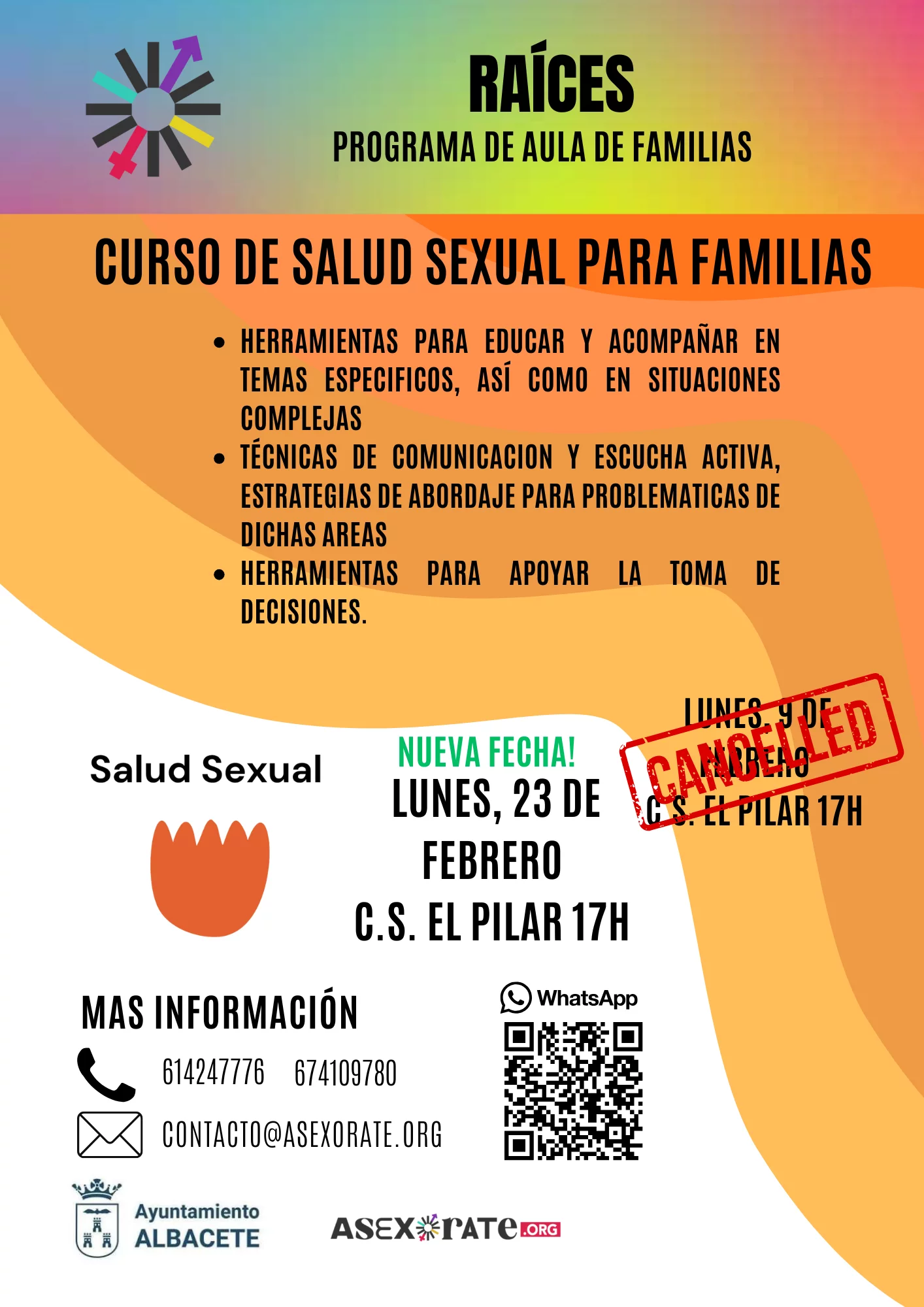 En el marco del Programa de Familias “Raíces” y con la subvención del Ayuntamiento de Albacete, el proyecto Asexórate presenta una jornada formativa dirigida a madres, padres y tutores legales.