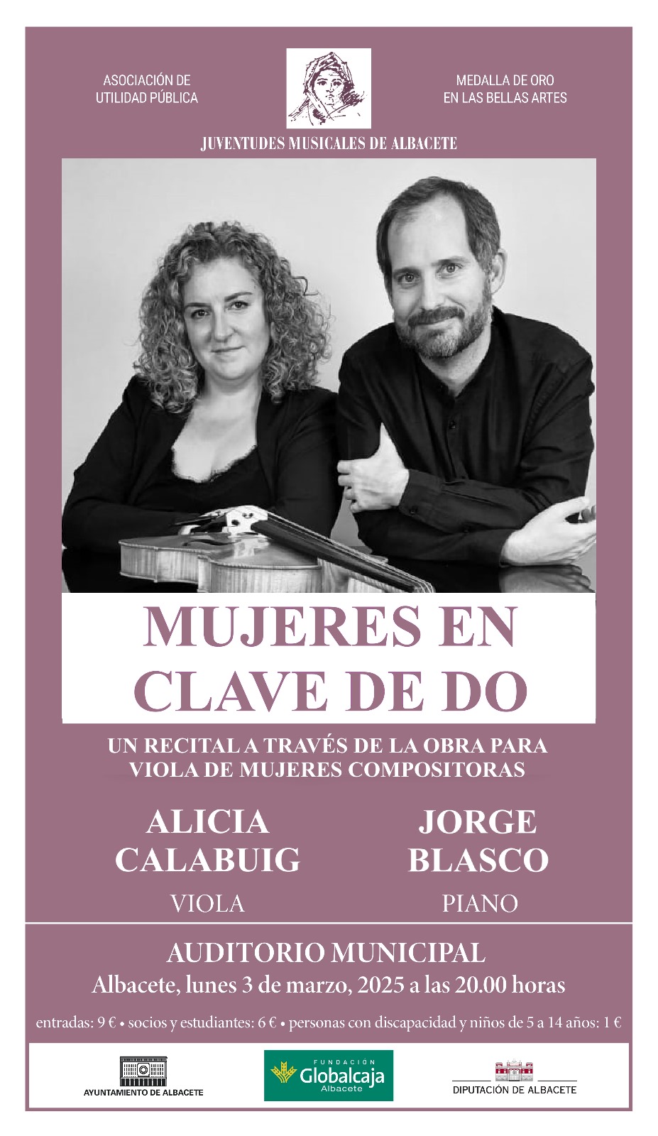 En su lugar, y con un agradecimiento enorme por nuestra parte por su disposición al haber respondido a nuestra petición de sustitución de último momento, contaremos con la violista Alicia Calabuig y con el pianista Jorge Blasco, quienes ofrecerán su recital “MUJERES EN CLAVE DE DO”, en el que podremos escuchar magníficas obras para viola y piano escritas por Rebecca Clarke, Amy Beach, Nadia Boulanger y Hélène Fleury.