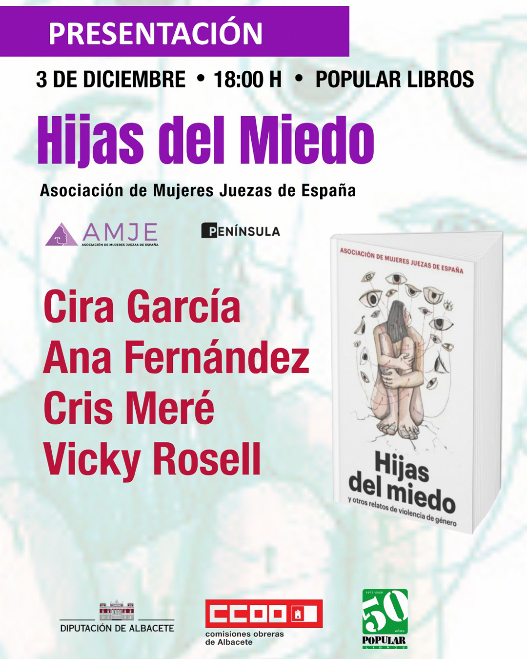 La Biblioteca acogerá la presentación de Hijas del miedo, un impactante libro que recopila relatos reales de mujeres víctimas de violencia de género, narrados y recogidos por un grupo de juezas.