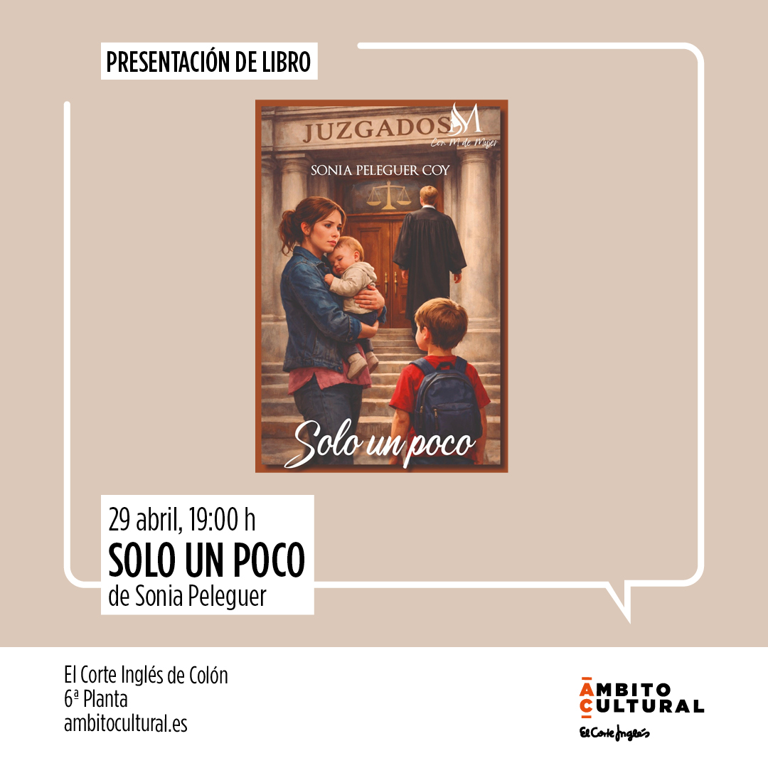 La escritora valenciana Sonia Peleguer presenta el miércoles 29 de abril, a las 19 h, en la sala de Ámbito Cultural de Colón, su última novela, Solo un poco. Sonia Peleguer reparte su tiempo entre la escritura y la lectura, y se define como una mujer de ciencias con una profunda pasión por las letras. Su primera obra publicada, La Patrona, vio la luz en 2023 con una magnífica acogida. En 2024 lanzó Noches Desiertas, un thriller con tintes románticos. Solo un poco es su tercera novela, una historia familiar que, con total seguridad, dejará huella. Es un relato de supervivencia, de intriga, de quiebros a la justicia y de amor.