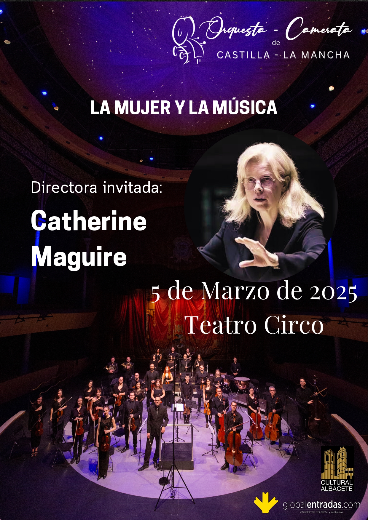 | Disfruta de un concierto de música clásica dedicado a las mujeres, dirigido por la talentosa Catherine Maguire junto con la Orquesta Camerata Castilla-La Mancha. Una velada emotiva y poderosa que celebra el legado y la influencia de las mujeres en la música. |