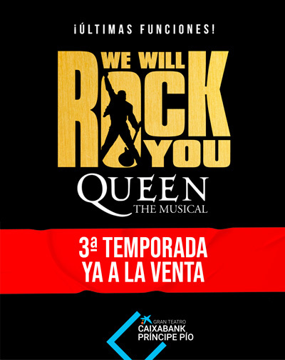 Producido por los legendarios Brian May y Roger Taylor de Queen, y basado en sus himnos inmortales, WE WILL ROCK YOU te espera en el Gran Teatro CaixaBank Príncipe Pío.